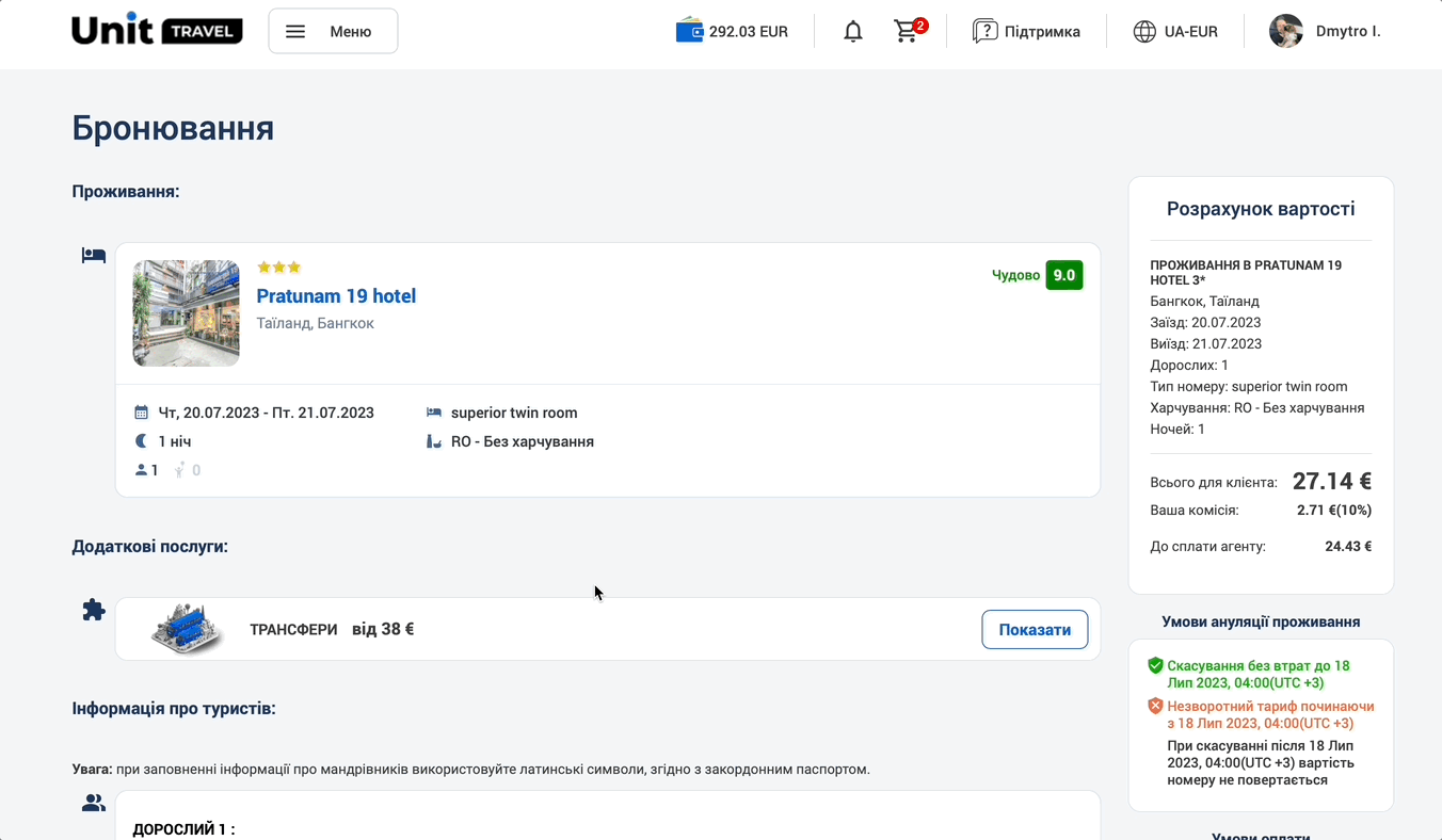На сервісі Unit.Travel ціни на готелі, трансфери, екскурсії та оренду авто відображені BRUTTO, тобто з урахуванням агентської комісії.
